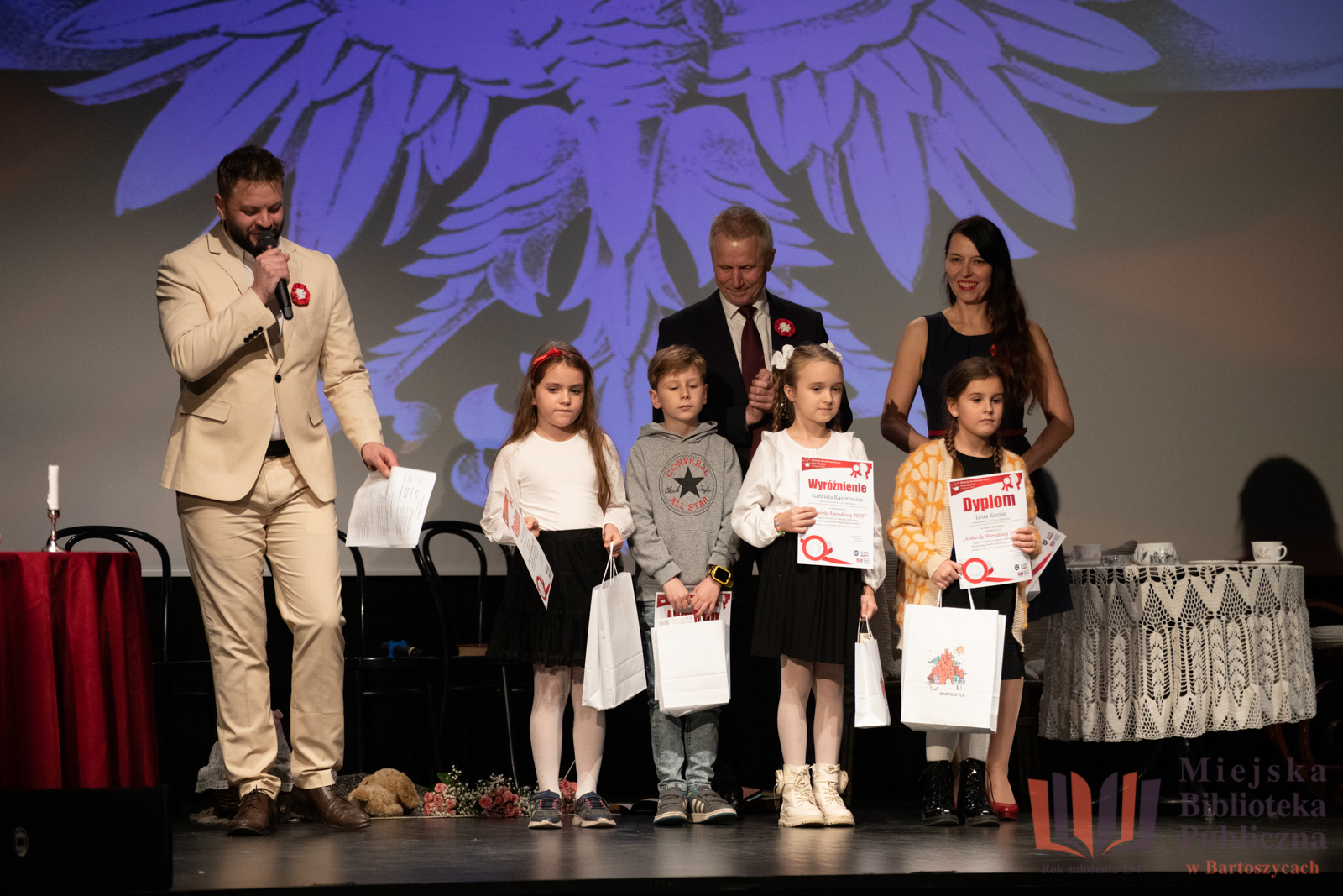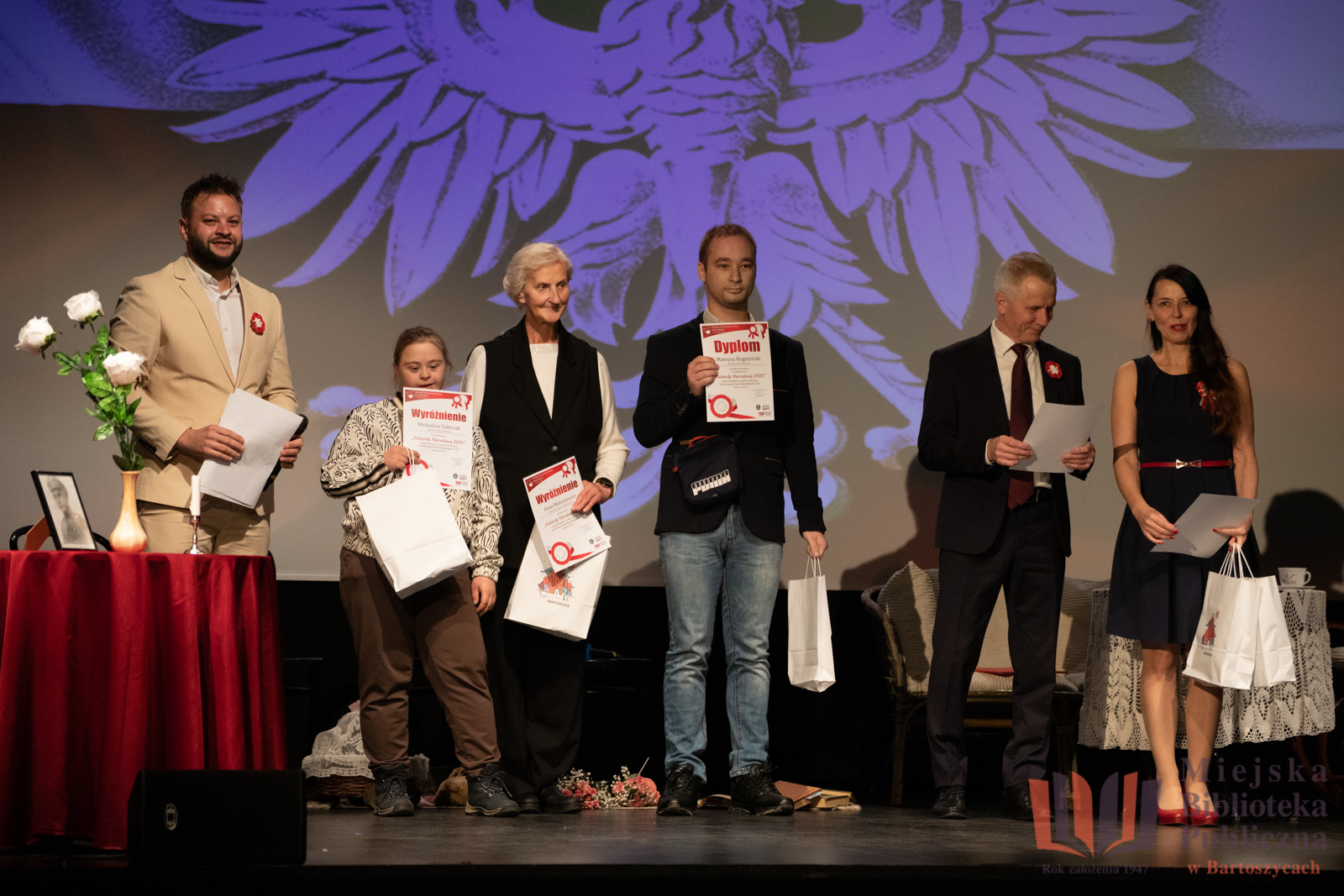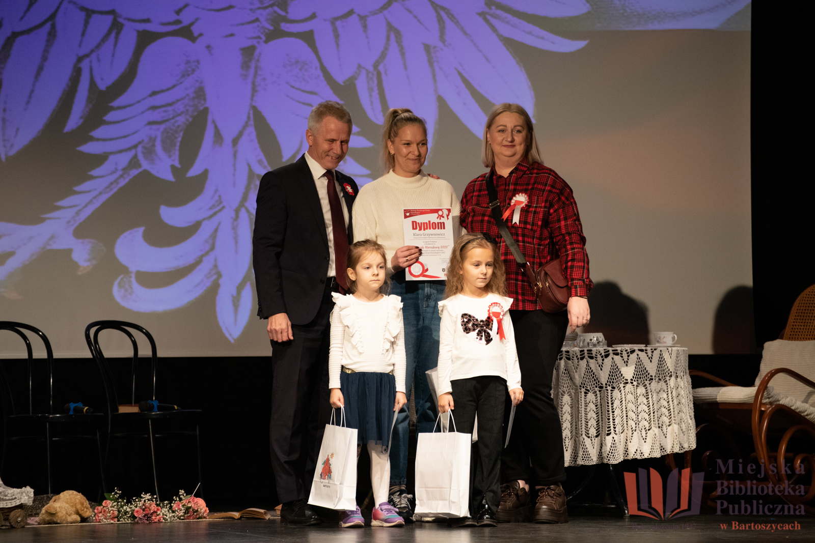 11 listopada, w dniu Narodowego Święta Niepodległości, w Bartoszyckim Domu Kultury odbyło się uroczyste wręczenie nagród dla laureatów i wyróżnionych w konkursie na najpiękniejszą Kokardę Narodową 2025, zorganizowanym przez Miejską Bibliotekę Publiczną w Bartoszycach oraz Urząd Miasta Bartoszyce.