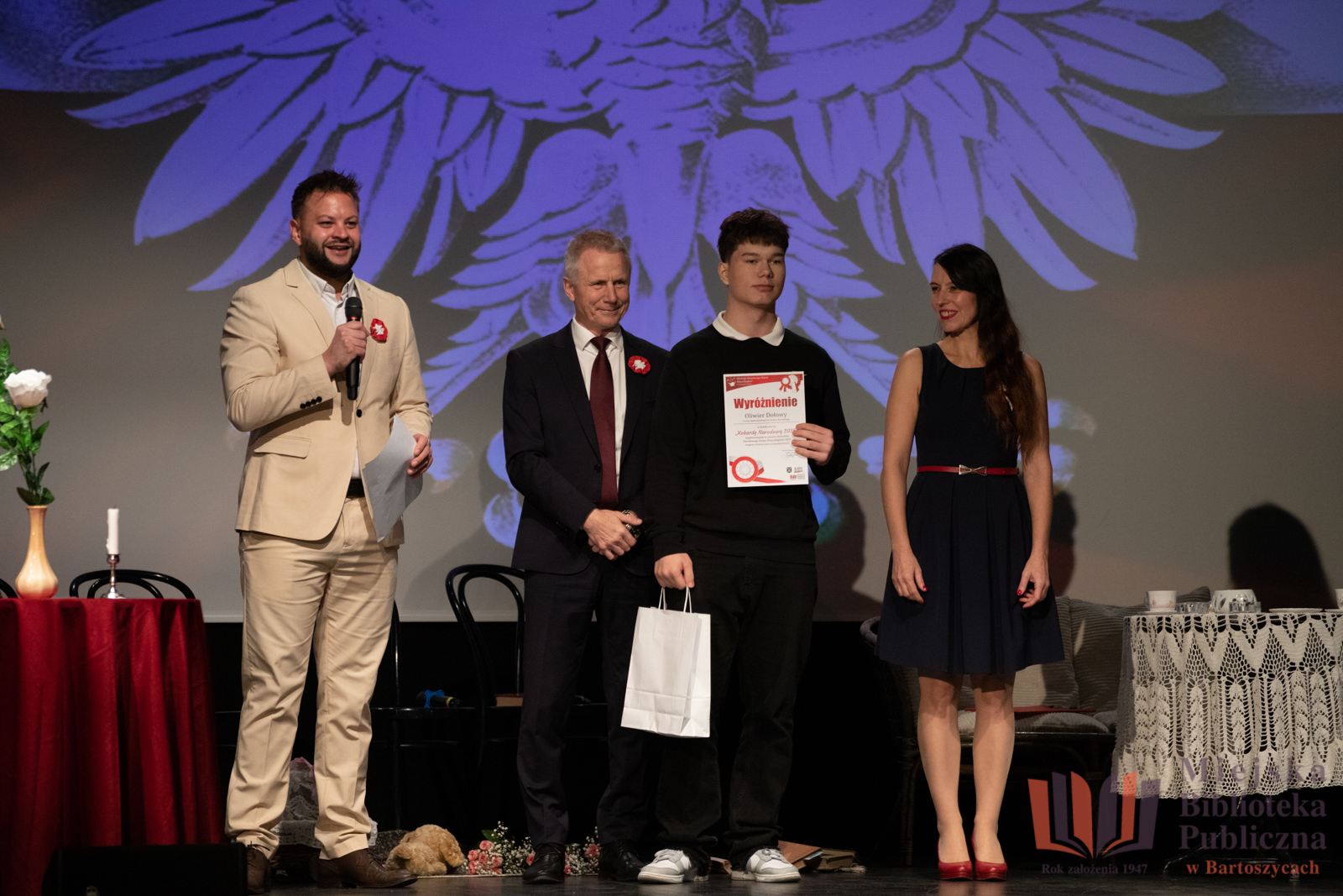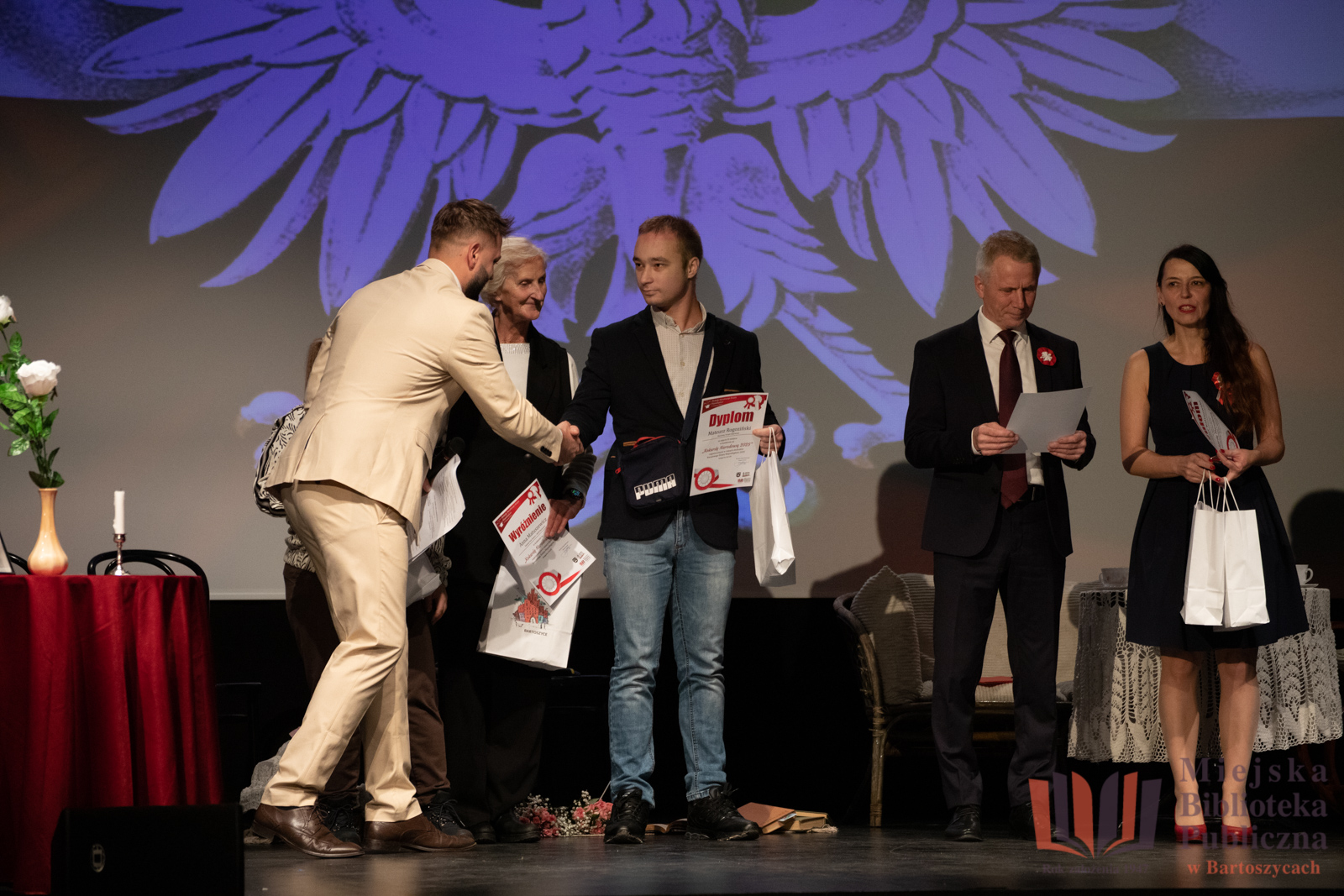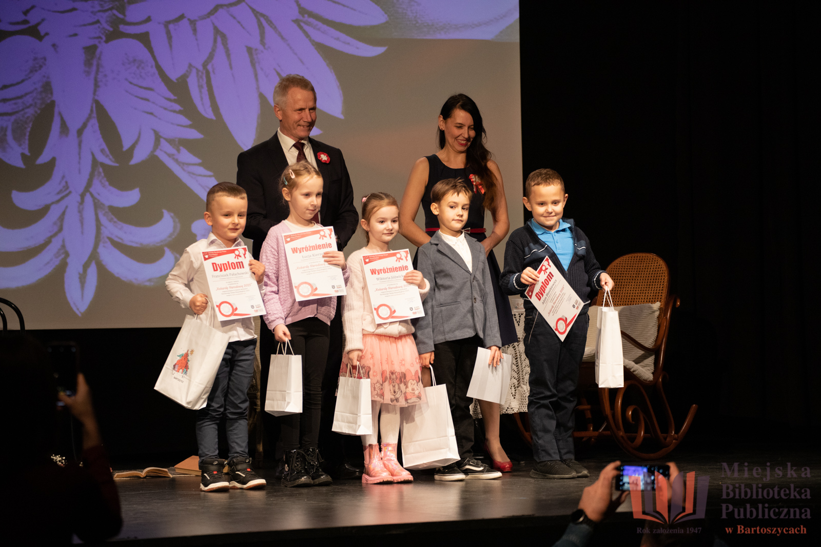 11 listopada, w dniu Narodowego Święta Niepodległości, w Bartoszyckim Domu Kultury odbyło się uroczyste wręczenie nagród dla laureatów i wyróżnionych w konkursie na najpiękniejszą Kokardę Narodową 2025, zorganizowanym przez Miejską Bibliotekę Publiczną w Bartoszycach oraz Urząd Miasta Bartoszyce.