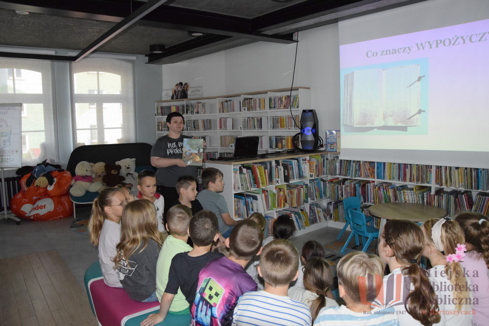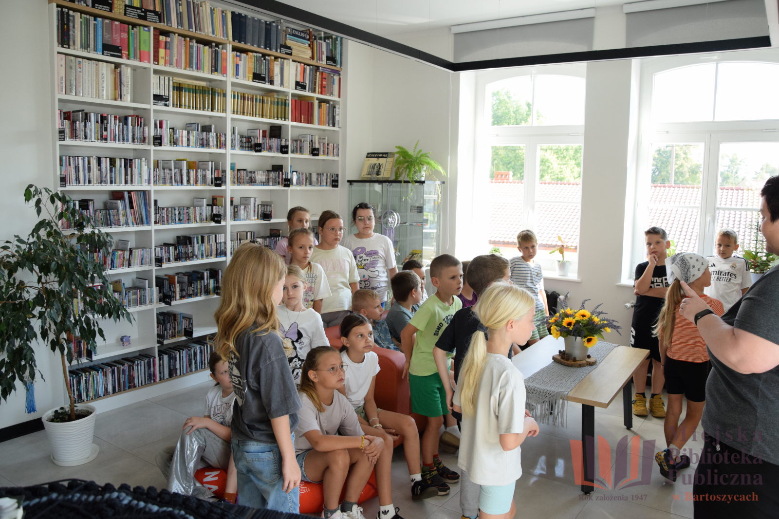 Pierwszą grupą, która odwiedziła naszą Bibliotekę po wakacyjnej przerwie, była klasa II „A” ze Szkoły Podstawowej nr 3 im. Tadeusza Kościuszki w Bartoszycach. Uczniowie pojawili się u nas po to, aby poznać naszą instytucję i zapoznać się z szeroką ofertą, jaką przygotowaliśmy dla wszystkich grup wiekowych. W trakcie wizyty dzieci miały okazję obejrzeć prezentację multimedialną która w przystępny sposób przybliżyła im działalność naszej placówki oraz przybliżyć im zgromadzone zbiory, przede wszystkim te skierowane do nich. Następnie, pod opieką bibliotekarzy, odbyli spacer po naszych salach, gdzie mogli zobaczyć nie tylko zbiory książkowe, ale także zapoznać się z różnorodnymi usługami i wydarzeniami, które organizujemy przez cały rok.